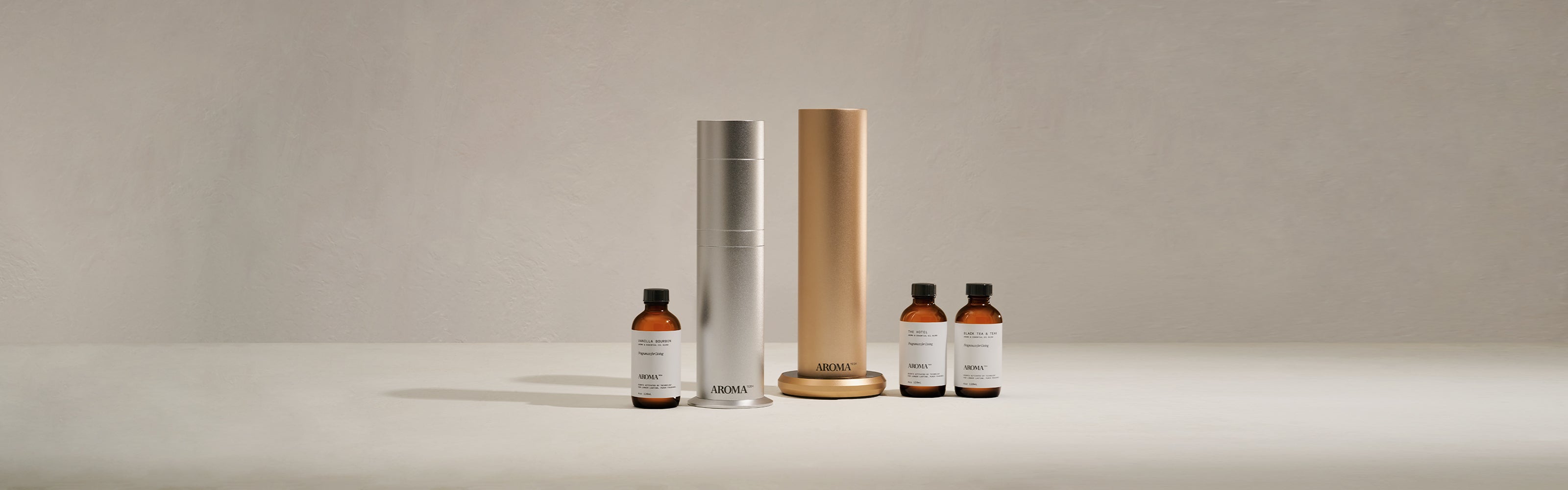 Scent Diffusers: AroMini, AroMini BT, AromaPro, AT-600, Air Stream Single, Air Stream Duo, AromaCube, AromaCruise, and their refurbished models.